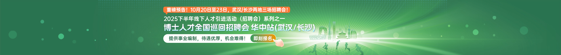- 【華中站博士招聘會】武漢+長沙雙城聯動,事業編制+優厚待遇,誠邀博士人才參加! 09.30