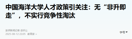 最近,中國海洋大學在引才公告中提到“無非升即走”,引起了輿論關注。事實上,中國海洋大學并非首個打出“穩定牌”的高校。當越來越多高校加入這一行列,這究竟是預示制度變革,還是新一輪“人才爭奪戰”的宣傳策略?
